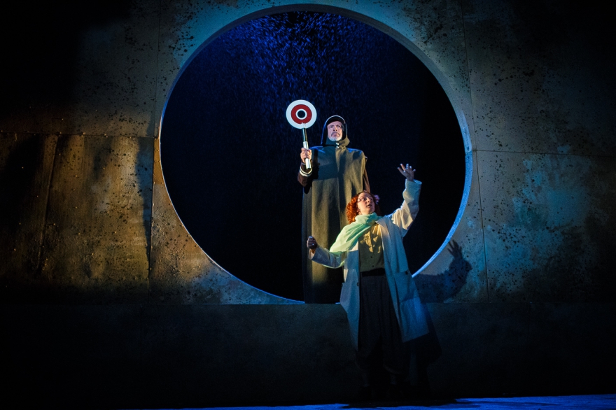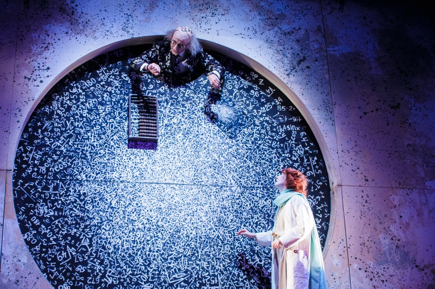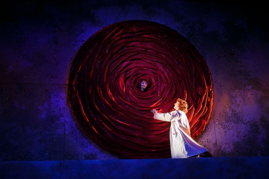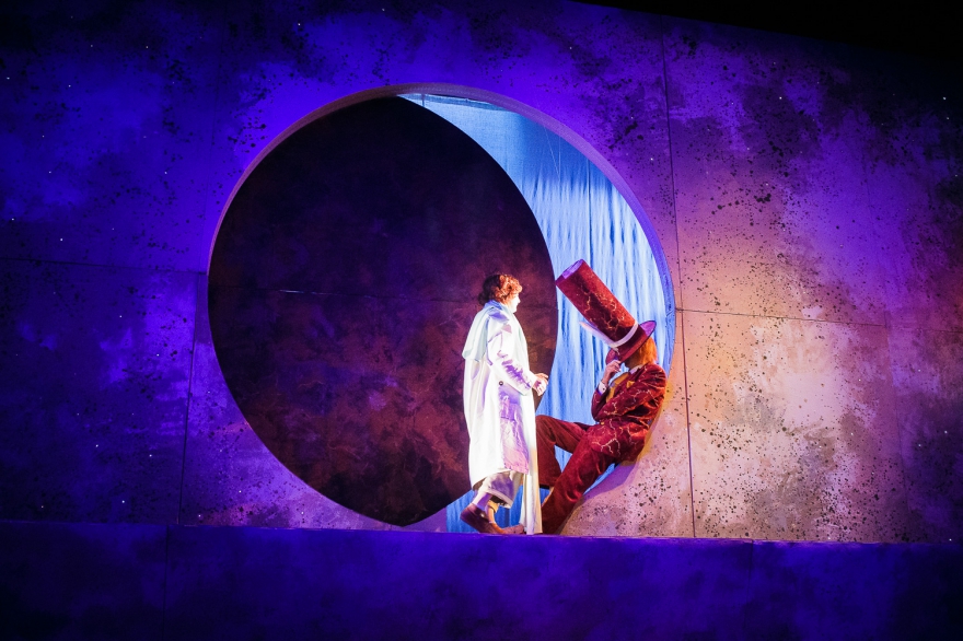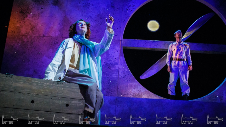Поэтому на что действительно обращаешь внимание – это на декорации Лилии Имамутдиновой. В основе – гигантская круглая полость, в которую вписывается планета за планетой. По ним путешествует Маленький принц. Многие из их жителей, в буквальном смысле, привязаны к месту. Король (Александр Купцов) – своей мантией, в недрах которой скрывается Крыса (Нияз Зиннатуллин), откровенно повелевающая королем – явный намек на серых кардиналов. Погрязший в подсчетах звезд Деловой человек (Сергей Мосейко) существует в рамках грифельной доски, Честолюбец (Михаил Меркушин) неотделим от гигантской шляпы. Любимая принцем Роза (Анастасия Громова) – сама по себе огромный букет.