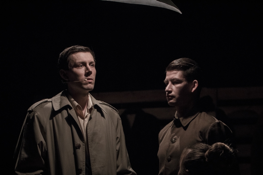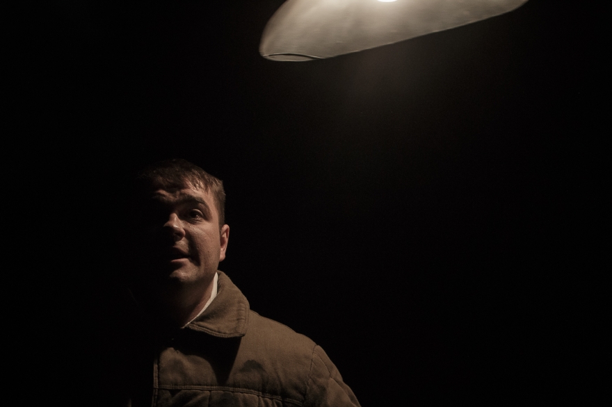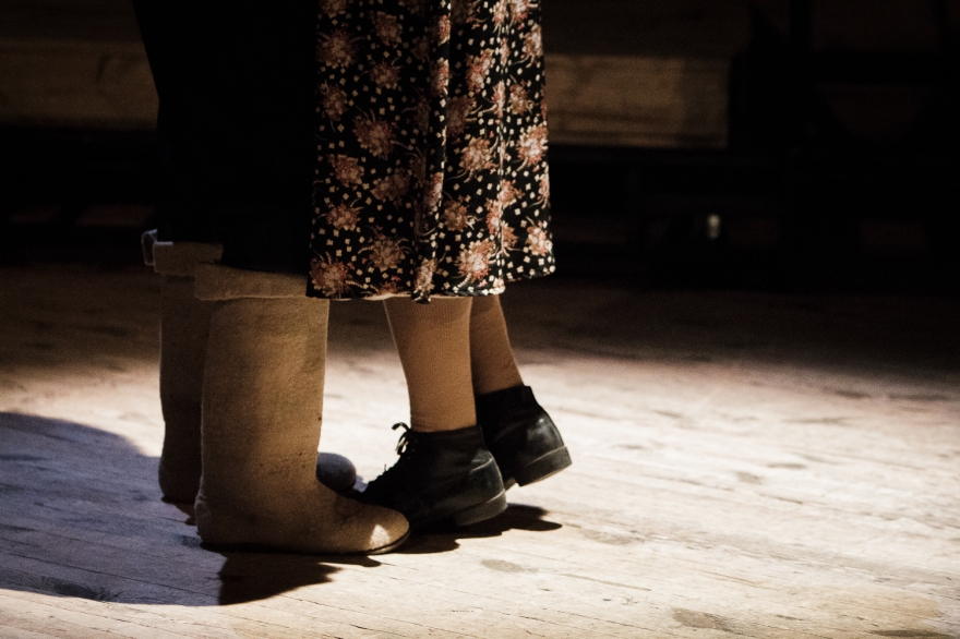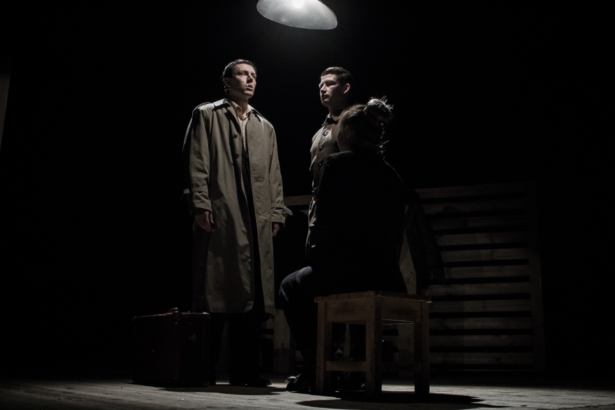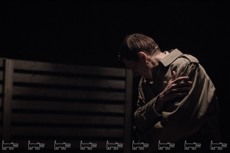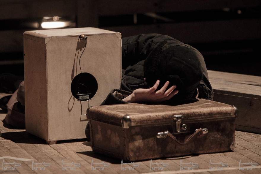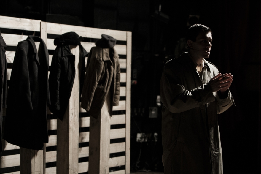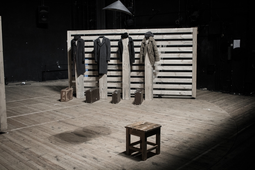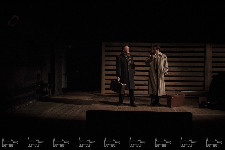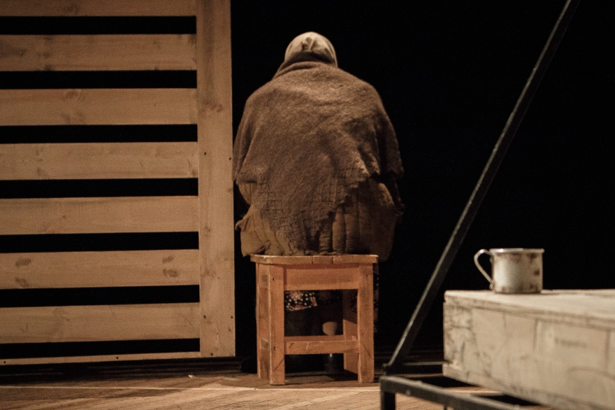 На сцене — заборы из гипермаркетовских досок и несколько столбов. Главная сила – свет: он проникает сквозь ограждения, выхватывает персонажей, что-то среднее между ангелов и вертухаем.