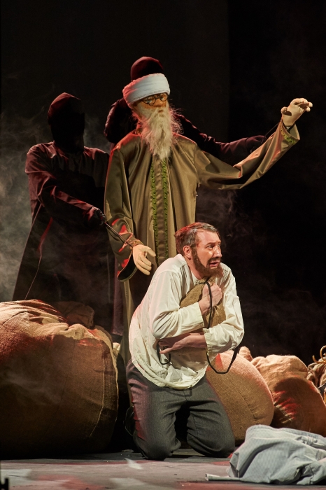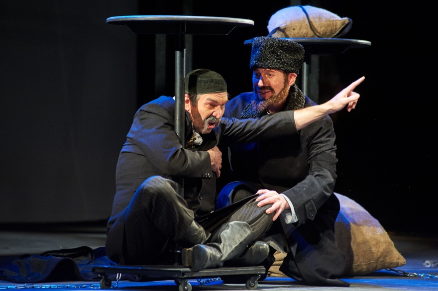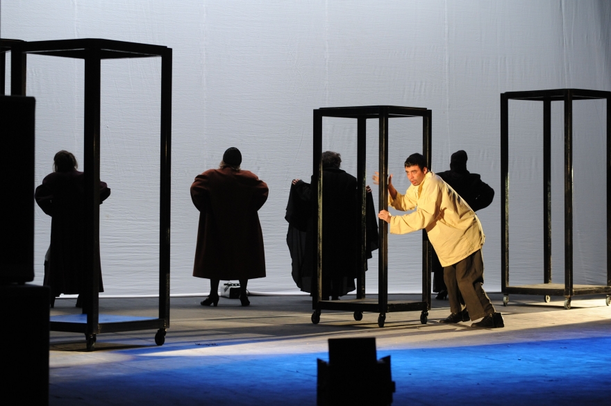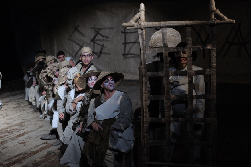 Переведенный на татарский Бертольд Брехт - о том, как в поисках человека с открытым сердцем боги спустились на землю, а нашли только проститутку Шен Те, чья доброта приносит ей только несчастья. Петербургский режиссер Искандер Сакаев рассадил зрителей на сцене, а художник по костюмам Дина Тарасенко обрядила актеров в средневеково-космические костюмы.