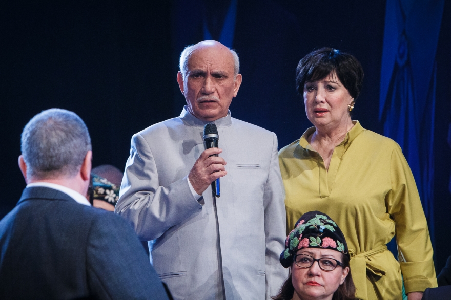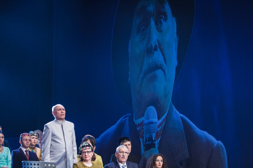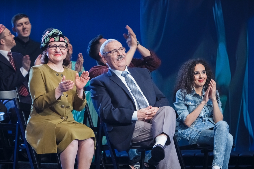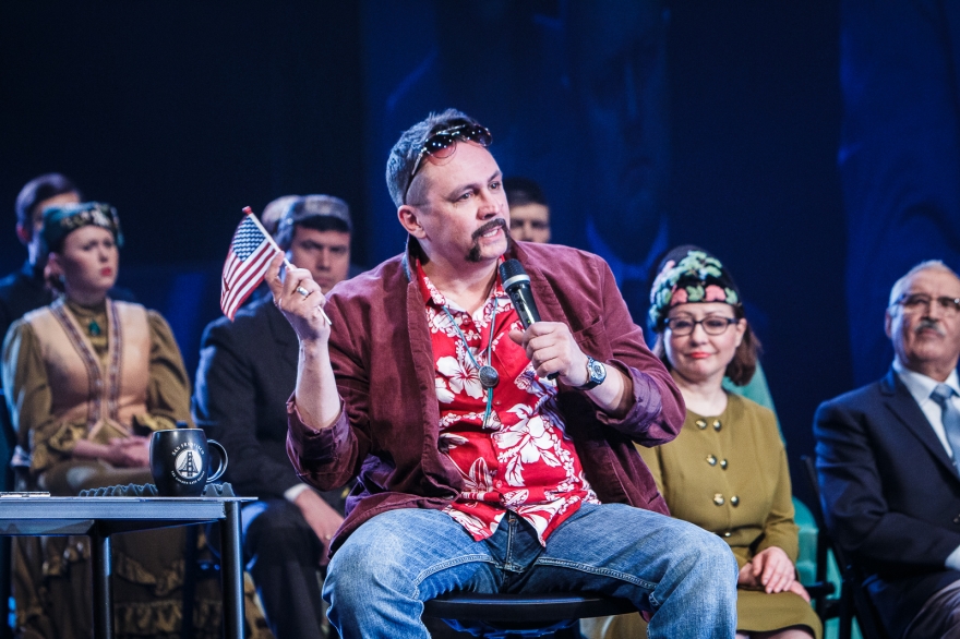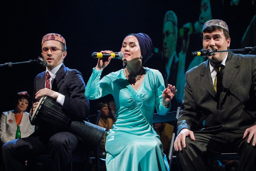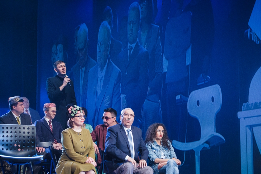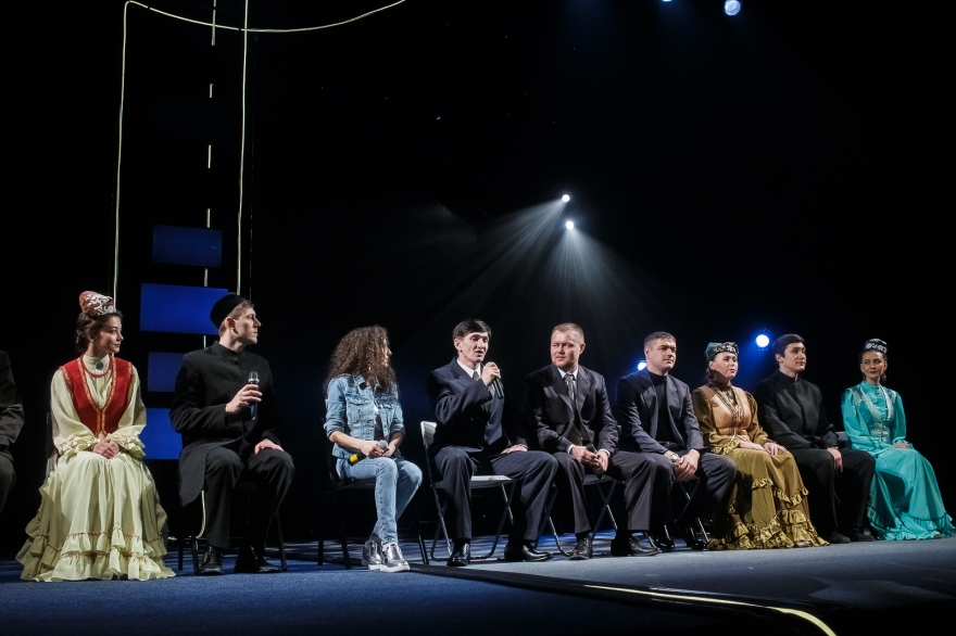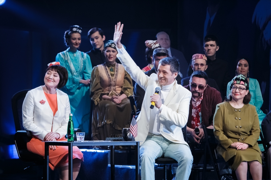 Действие — это телемост между татарами США и СССР, они сидят порознь, смотрят друг на друга и пытаются говорить. Это пьеса конца 80-х, с верой в светлое завтра. Но сейчас разговоры о самосознании, языке, разорванности многомиллионного народа стали актуальны, что несколько режиссеров ставят спектакли, вербатимы, снимаются социальные ролики на эту тему. Это важно.