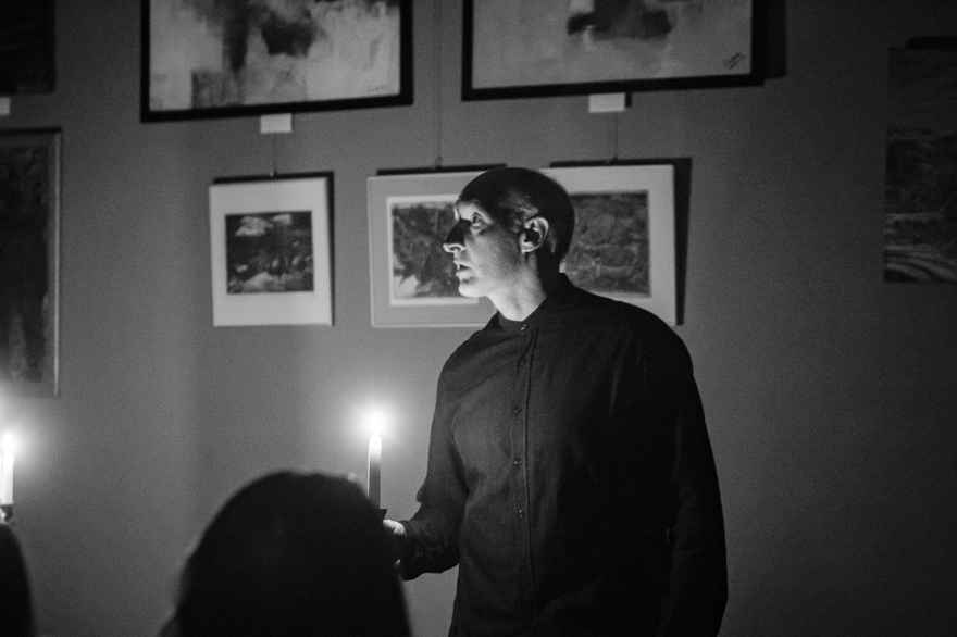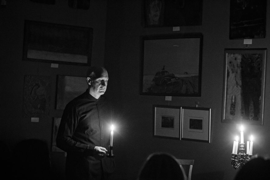 «Искусство – не десерт!» - провозгласила издатель журнала «КЗН.Собака.ру», соорганизатор творческого объединения «ОКНО» и, помимо концептуальных выставок, стала устраивать интеллектуальные камерные вечера. На этот раз собрались на моноспектакль «Тебя избрал я, Русь!» по стихам Максимилиана Волошина. Это работа номинанта премии ТОП-50 журнала «КЗН. Собака.ру», актера Качаловского театра Николая Чайки, в которой он выступил в качестве автора литературной композиции, режиссера и исполнителя. Вот как объяснил Николай свой выбор материала для спектакля нашему журналу: