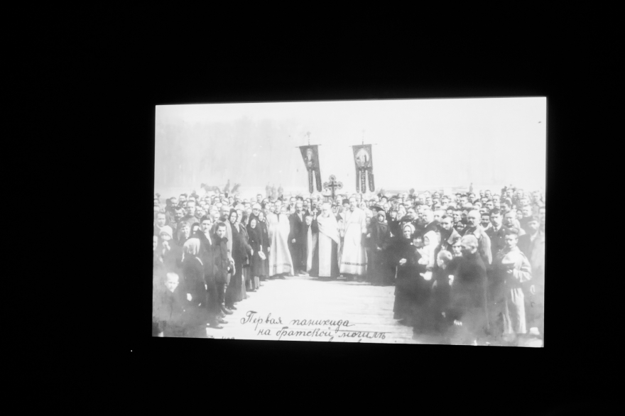 Музыкальное сопровождение, в котором равно значимы были «Песнопения и молитвы» Свиридова и советские «революционные» песни, великолепные записи хора Валаамского мужского монастыря и живой звук оркестра и хора студентов Казанского музыкального училища. И, конечно же, игра самого актера, который пытался вжиться в атмосферу той эпохи, прочувствовать ее и донести до сегодняшних дней, потому что на самом деле точка в споре столетней давности «кто прав – кто виноват» не поставлена до сих пор. Об этом размышляли долго не расходившиеся после спектакля зрители.