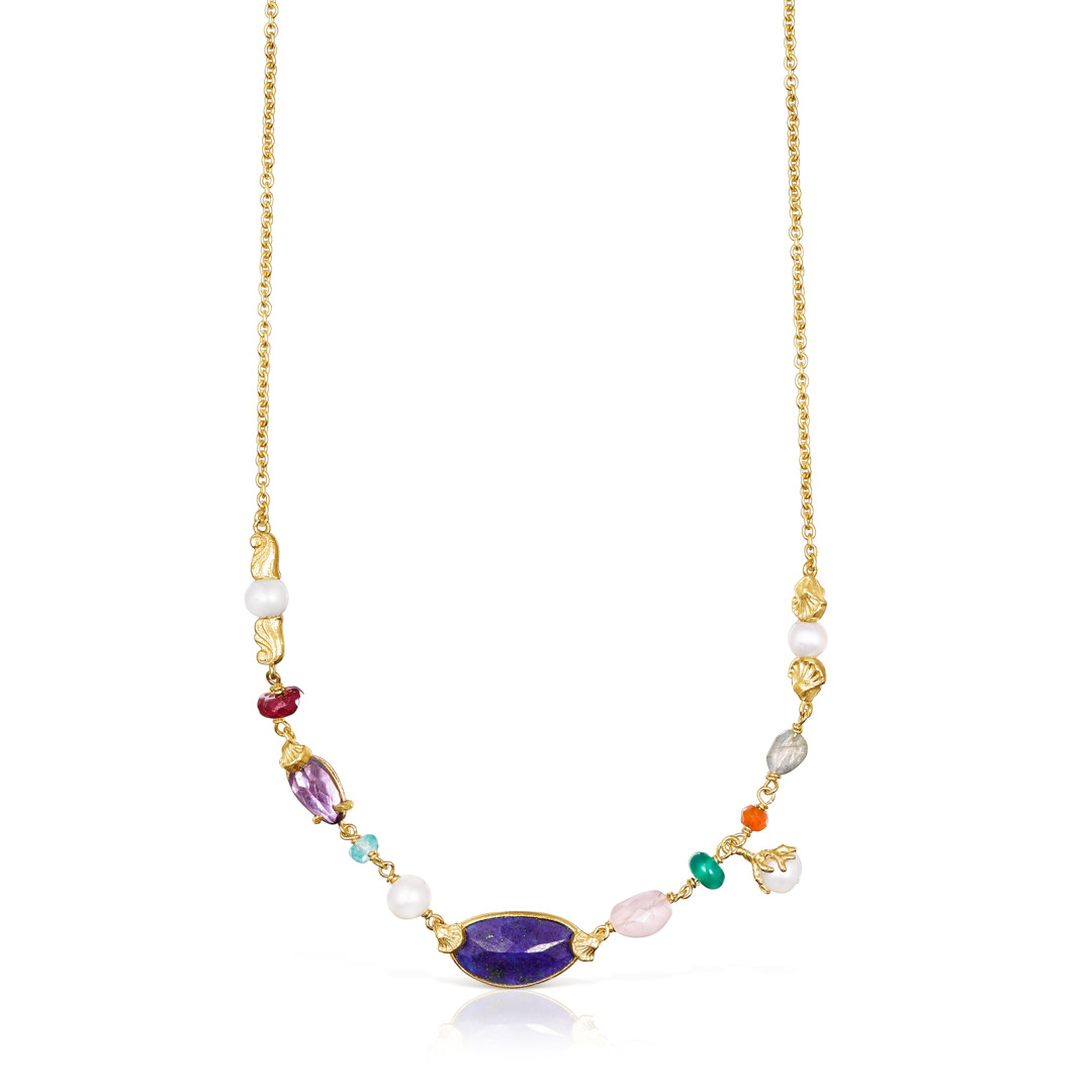 Ювелиры TOUS работали с самыми разными камнями: лазуритом, сердоликом, апатитом, анемоном, пресноводным жемчугом. Кроме украшений в коллекцию входят и аксессуары — сумки-тоуты, кросс-боди и плетеные сумки-корзины.