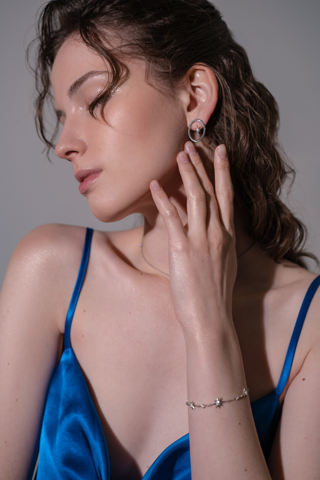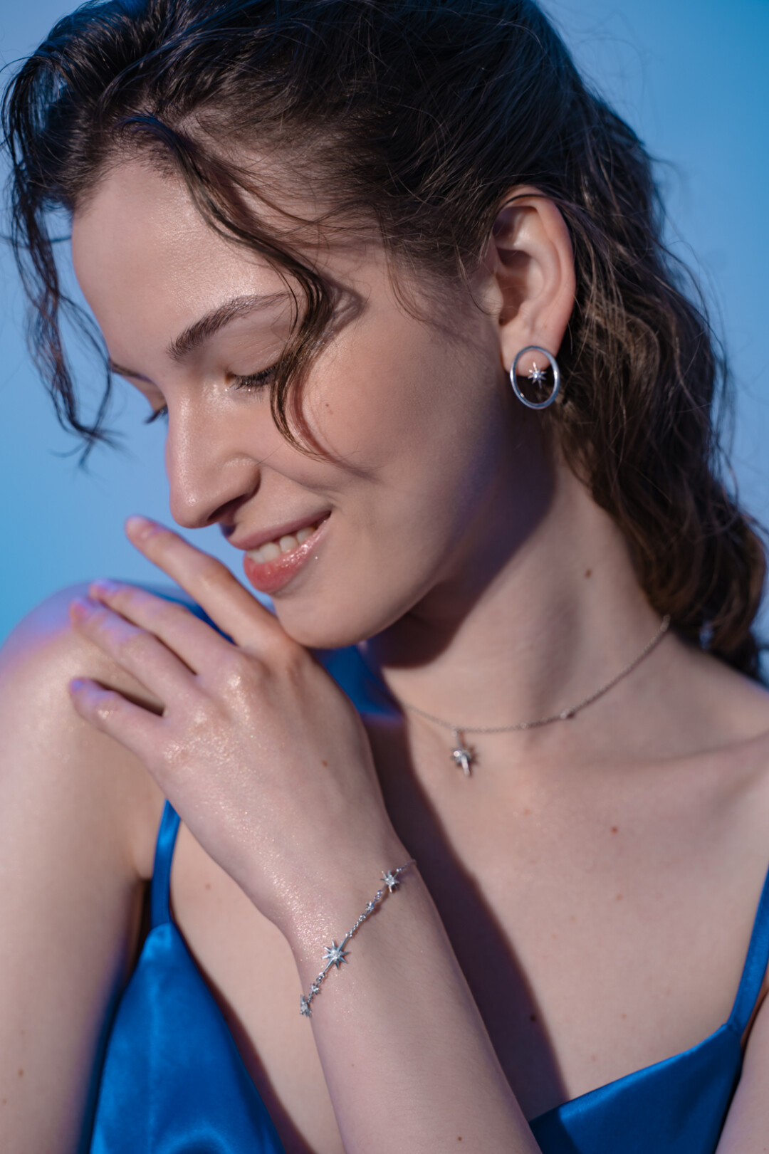 Украшения из коллекции отсылают к головному убору героини Ламарр — короне, и ее наряду, усыпанным звездами. Блеск звезд буквально стал референсом для сережек DAFNA под названием «Созвездие». Кроме них, в коллекцию вошли браслет, подвеска и серьги-джекеты. Все изделия выполнены из серебра с родиевым покрытием и дополнены вставками из фианитов.