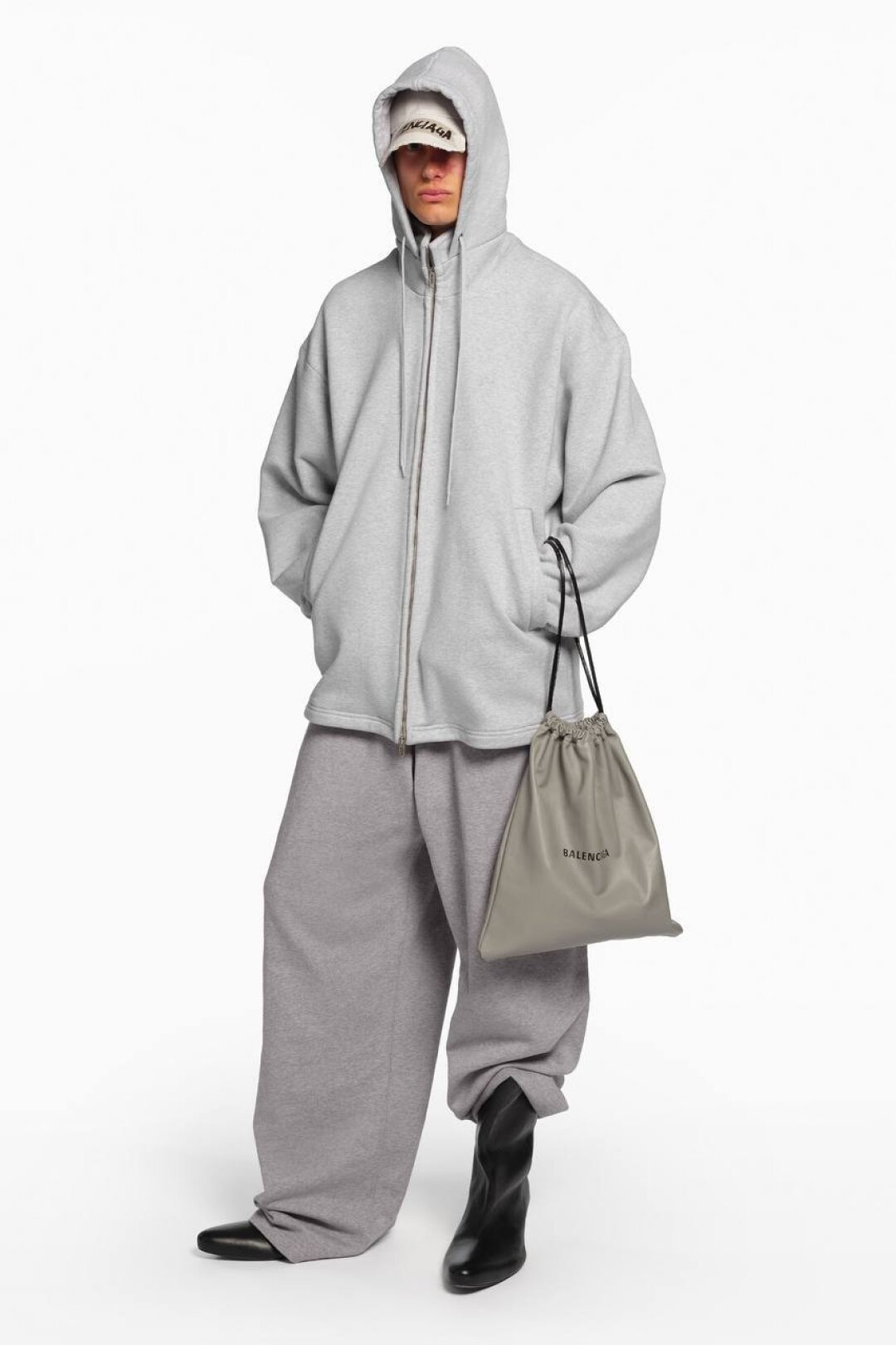 Возведя в фэшн-ранг лазурный икеевский баул Frakta и хозяйственную сумку (знакома всем, кто хотя бы раз примерял джинсы на картонке!), худрук Balenciaga превратился в главного адепта поп-арта в индустрии. Быт, мало интересовавший больших игроков мира люкса, стал основой Balenciaga by Demna и, конечно, играющей на руку самому Гвасалии (и конгломерату Kering!) коммерчески успешной провокацией (вспоминаем и громоздкие Triple S, и лютую логоманию в пророческой коллаборации с Gucci, и весь образ постсоветского гопника с натянутыми на треники носками).
