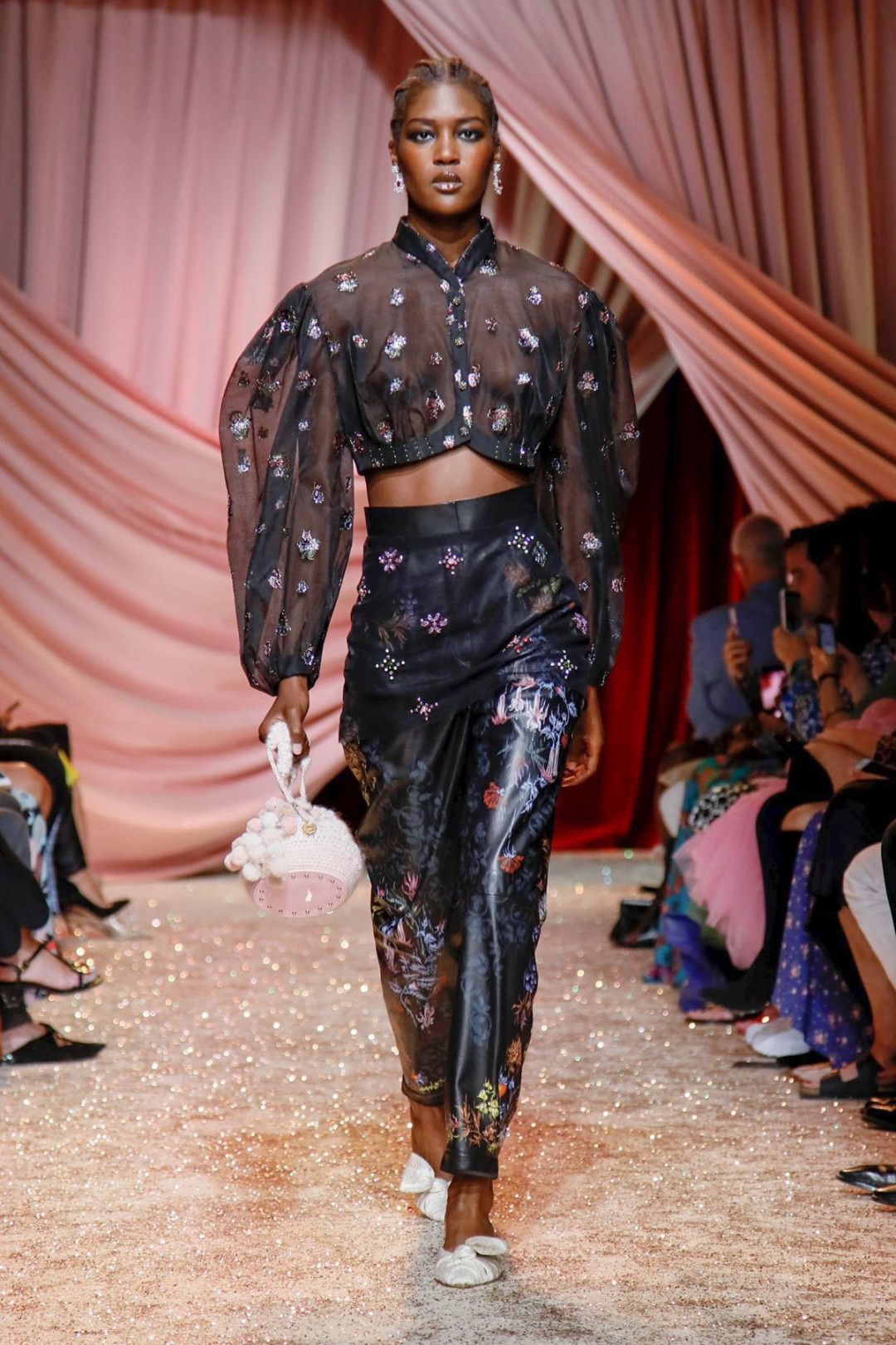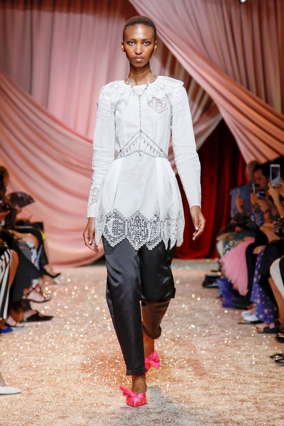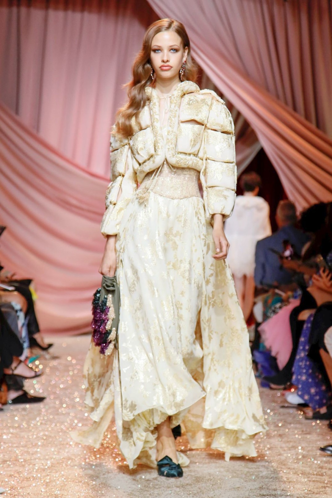 В нескольких выходах угадывались образы легендарной нью-йоркской it-girl Глории Вандербильт, которая скончалась в возрасте 95 лет 17 июня. Аристократка, стиль которой лег в основу костюмов Холли Голайтли из «Завтрака у Тиффани», обожала будуарные халаты с меховой оторочкой, шелковые комбинации, мимикрирующие под повседневные платья, и кружевные наряды в молочных тонах. Некоторые их элементы напоминали русскую народную сквозную вышивку – для коллекции Ulyana Sergeenko ее уже во второй раз выполнила фабрика «Крестецкая строчка».