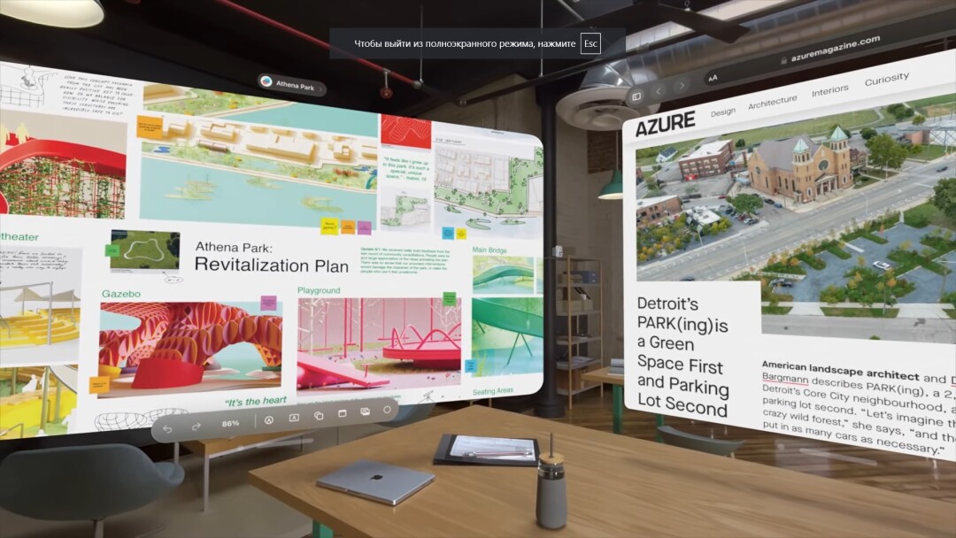 Конечно, нам на презентации много говорили про объемный звук, про то, насколько он важен в нашем восприятии мира. Но Apple Vision — это прежде всего суперпродвинутый носимый дисплей. Что подчеркивается уже в названии.