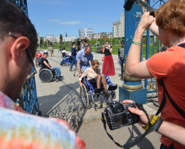 Доцент кафедры социологии КФУ Искандер Ясавеев, активисты группы «Город без преград» взяли в аренду инвалидные коляски и пригласили журналистов, неравнодушных горожан и мэра Ильсура Метшина на прогулку.