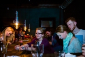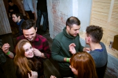 На то, что в новом баре будет что-то происходить, указывала бумага с надписью «Maria Minerva». За дверью - располагающий к себе берлинско-петербургский минимализм. Внушительный зал без каких-либо интерьерных излишество, но с баром (в котором уже есть бургеры и прочая клубная еда), на другой стороне - сцена с небольшим возвышением. Гардероб, туалет. Организаторы не называли это даже тестовой вечеринкой, тем не менее, в первый день в «Соль» пришло достаточно большое количество народу и слух о новом заведении, похоже, по городу пошел.