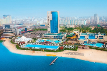 Отель с аквапарком, пляжем, барами, ресторанами, кинотеатром, боулингом, танцполами и фитнес-клубом.