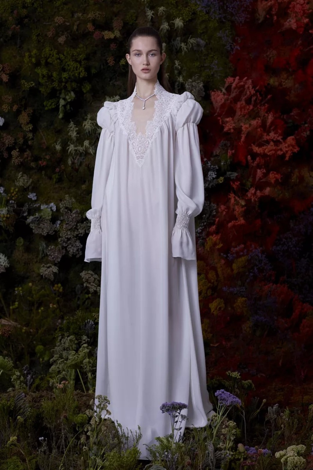 В осенне-зимней коллекции Erdem Couture, выпущенной уже на следующий год, платья хоть и сделаны в белом цвете, но отличаются от множества других. Одно напоминает сорочку викторианской эпохи, другое отсылает к монашескому одеянию, а третье имеет настолько мелкую плиссировку и кропотливо вышитые рукава, что их не повторит даже самая опытная мастерица. У Victor & Rolf коллекция тоже традиционно белая и даже с типичными рукавами-буффами, сложенными из ткани бутонами и гигантскими бантами на спине. Однако голландские дизайнеры уравновешивают сложный декор простыми силуэтами (одно из платьев сделано в виде рубашки) и стилизуют их не фатой, а минималистичными ободками, поэтому они не смотрятся слишком громоздкими и помпезными.