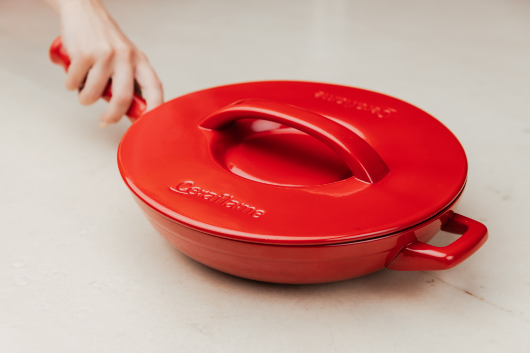 Несмотря на отсутствие тефлонового покрытия, натуральный материал Ceraflame гарантирует антипригарные свойства, а также устойчивость к царапинам и термошоку. Посуду Ceraflame можно мыть в посудомоечной машине, а модный минималистичный дизайн делает уместной подачу блюд к столу прямо в кастрюле, тажине или сотейнике.