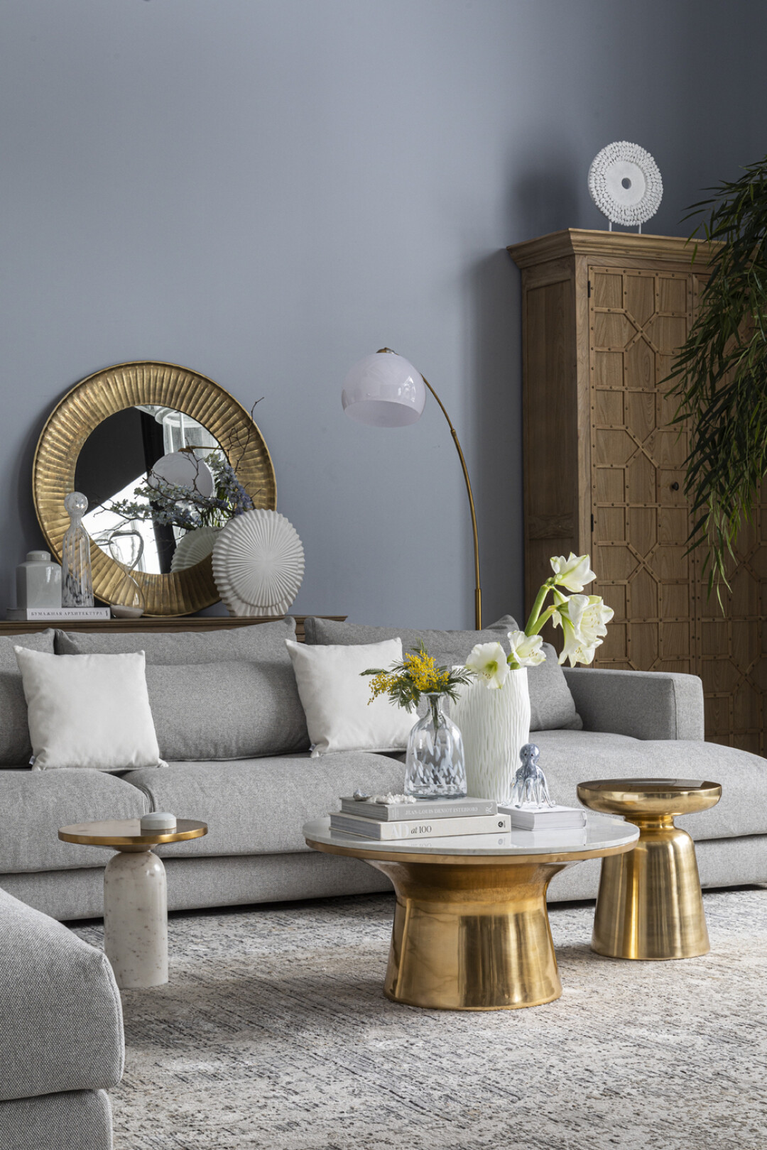 Конечно, когда речь заходит о классическом стиле, имеется в виду не будуар в духе Людовика XIV. Но некоторые элементы вроде лепного декора или каминного портала зададут тон всему пространству, добавив роскоши. При этом есть такие вещи, которые существуют на стыке стилей и помогут объединить предметы из разных направлений дизайна в одном пространстве. Например, диван «Бэйкер» от Dantone Home в этом смысле подходит идеально. Он гармонично сочетается как с мебелью в классическом стиле, так и с аутентичными предметами в этническом дизайне и даже с современными арт-объектами, открывая огромный простор для экспериментов.