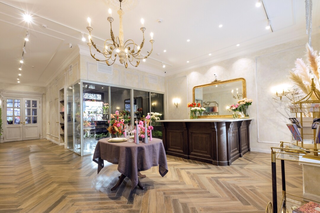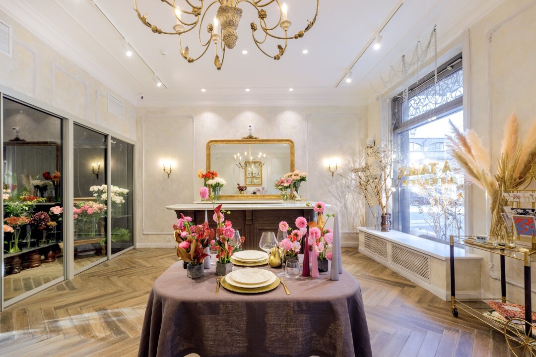 Мы задумывали ателье как место, где можно отдохнуть, насладиться широким выбором цветов, выпить чашку кофе, побеседовать с флористом. Интерьер ателье выдержан в современной французской классике. La table, то есть стол, это предмет, вокруг которого собираются люди, его красиво сервируют, ставят цветы. Здесь смешивается аромат трюфеля, роз и свежего багета, звон бокалов и голосов. Мы вдохновились подобной атмосферой во Франции и успешно воссоздаем ее в России: зажигаем свечи, предлагаем гостям полистать книги о модных домах. Все это для того, чтобы узнать клиента и стать флористическим ателье семьи.