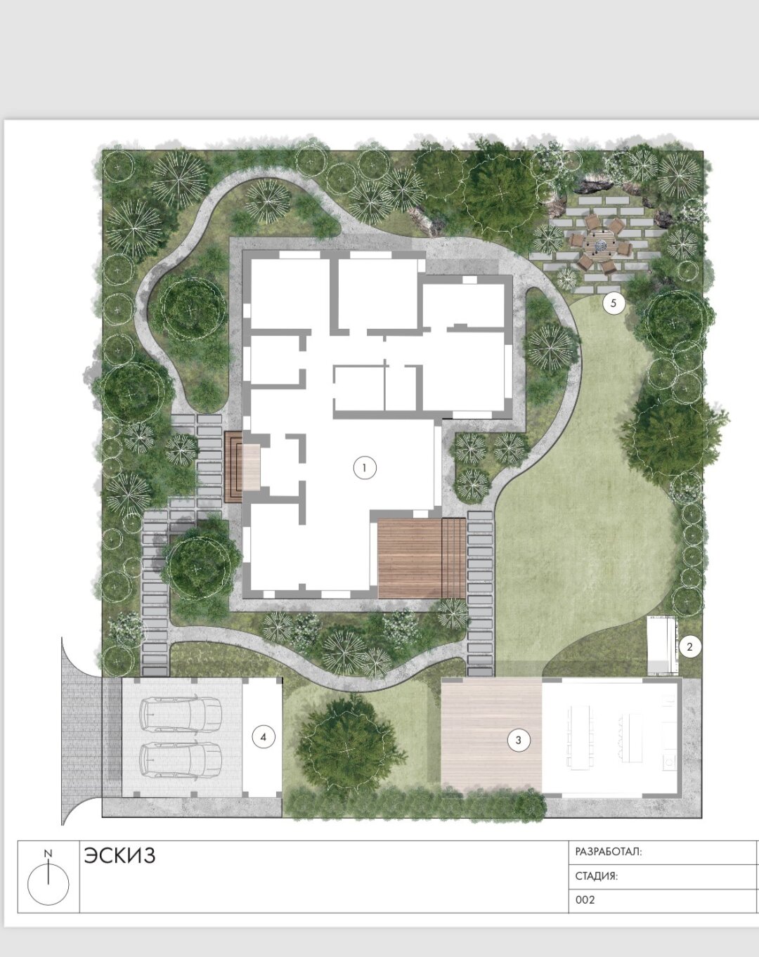 В первую очередь, мы тщательно прорабатываем проект: продумываем логику пространства, подбираем устойчивые растения, закладываем основу будущего сада. У меня технический подход к проектированию, подкрепленный чувством композиции и вниманием к деталям. Я много лет разрабатываю чертежи — это моя сильная сторона. Мне важно, чтобы каждая линия на чертеже была обоснована, будь то дорожка, цветник или зона озеленения. Все пространство должно быть логически выстроено и удобно для жизни. Кроме того, при проектировании я всегда учитываю восприятие пространства через все органы чувств. Важно не только то, как сад выглядит, но и как он звучит, как пахнет, какие тактильные ощущения он вызывает. Особое внимание я уделяю ароматным растениям: рядом с зонами отдыха почти всегда появляются чубушники, пряные травы, душистые цветы.