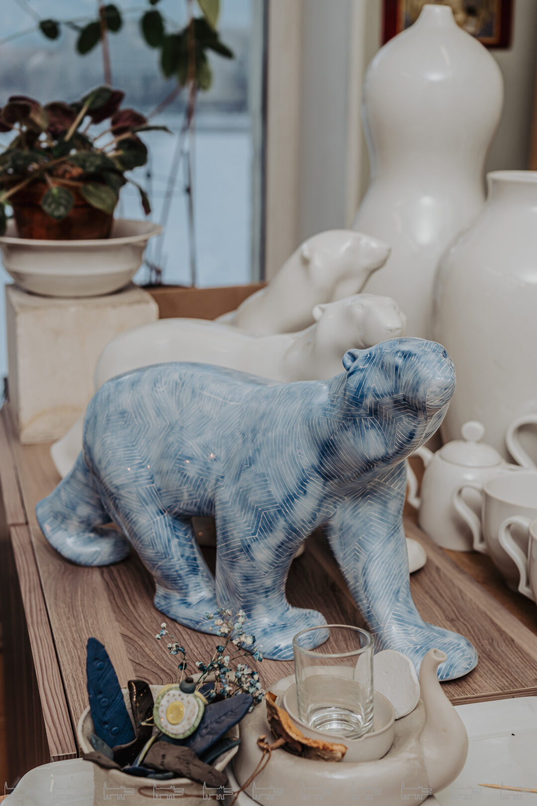 Сами скульптуры «Медведь сидящий» и «Медведь идущий» были созданы Борисом Яковлевичем Воробьевым в середине XX века. Советский скульптор-анималист работал с формой точно и лаконично: его медведи лишены декоративности, но сохраняют выразительную пластику и ощущение внутреннего движения. Именно за эту скульптурную ясность медведи остаются так любимы художниками Императорского фарфорового завода.