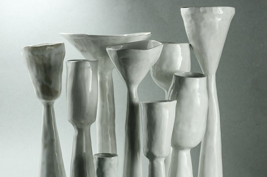 Бокалы «Джорджо», списанные с натюрмортов Моранди, конструктивистские вазы для салона Art Lounge, белые в крапинку тарелки по заказу шеф-повара Антона Исхакова для ресторана «Гастрономика» и посуда для обновленного ресторана Jerome Арама Мнацаканова.