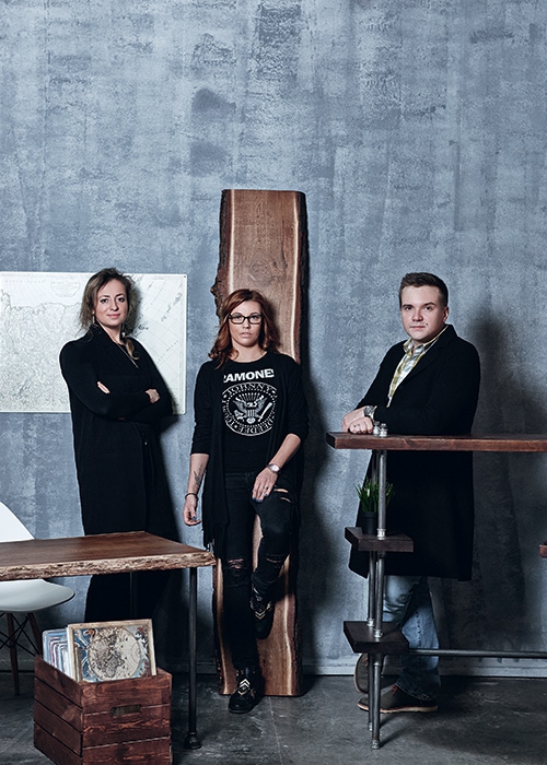 Бренд дизайнерской мебели из дерева и металла стал для Маргариты Протопоповой, выпускницы Финэка, вторым стартапом: три года назад она придумала компанию «Декоративная жесть», по производству декоративных жестяных табличек для интерьера, номеров для машин и информационных знаков. В этом году Маргарита решилась на мебельное производство в Петербурге. Над эскизами предметов она работает совместно с Александрой Тарарак, которая к тому же отвечает в компании за пиар. Совладелец Максим Черников прежде занимался недвижимостью, а сейчас развивает бизнес и помогает в сборке элементов в мастерской.
