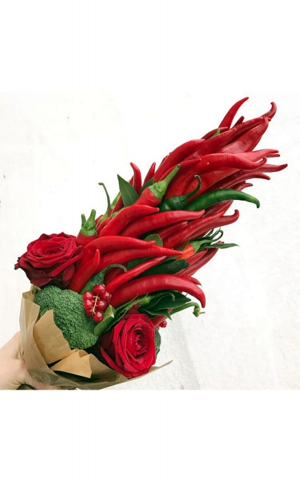 Уже два года дизайнеры, креативщики, чиновники, балерины и космонавты двух столиц дарят друг другу букеты из картошки, редиса, ежевики, кедровых шишек и перцев чили, а виноваты в этом настоящие букетные панки — мастерская овощной флористики «Очень хорошо» @ohorosho.