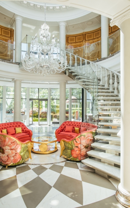 Друзья и коллеги Аркадия говорят, что этот дом площадью 1450 квадратных метров, в котором много воздуха и света, с непривычными для петербургского климата огромными окнами от пола до потолка, очень похож на своего создателя — человека открытого и гостеприимного. Одолженное у фильма Бертона смешение реального и фантасмагоричного прослеживается во всем: мраморный пол в главном холле напоминает шахматную доску, у колонн с классическими капителями здесь металлические цоколи, закругляющаяся лестница с одной стороны обрамлена обычными перилами, а с другой — стеклянными, на вычурных диванах распускаются огромные цветы.