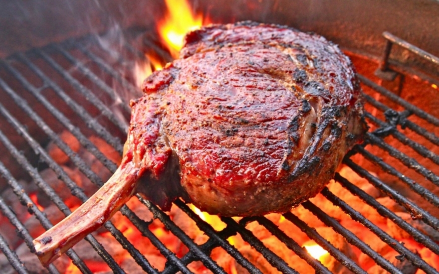 - Можно использовать аргентинский способ, при котором мясо готовят на наклонной решетке над мангалом: сначала внизу, а затем постепенно поднимая его. Маринованный в вине виноград станет отличным дополнением к сочному стейку.