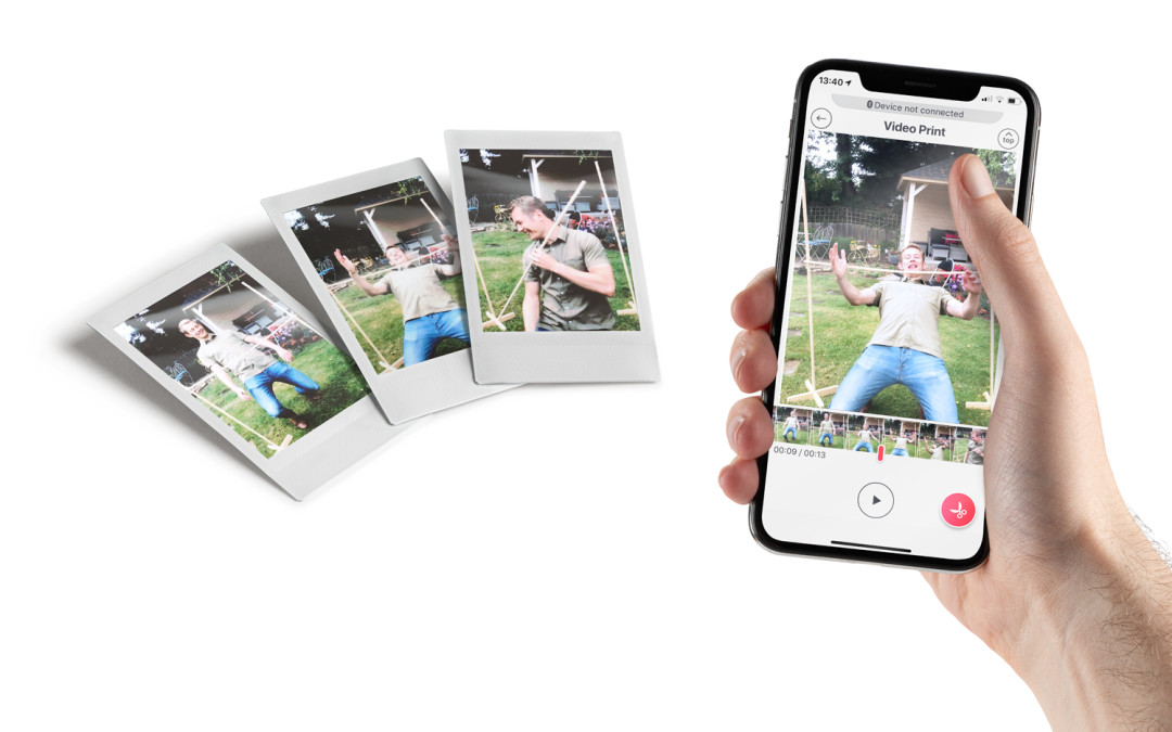 Как и для Instax mini LiPlay, для принтера mini Link разработано приложение и в App Store, и в Google Play. В списке всевозможных приятных функций – 27 различных коллажей, стикеров, аппликаций и рамок. Интерфейс понятный и интуитивный, а для того, чтобы напечатать фотографии, достаточно свайпнуть вверх. Сам девайс оснащен датчиком движения, поэтому функция reprint включается, когда мы переворачиваем устройство, а чтобы увеличить кадр, просто прокручиваем гаджет в разные стороны – никаких лишних кнопок и технических нагромождений – все легко и просто.