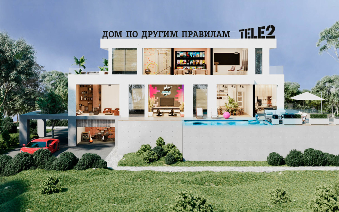 Команда Tele2 построила в онлайн-пространстве дом, где каждый гость сможет найти себе занятие. Например, в «Гараже» транслируют музыкальные концерты и делают подборки для домашней вечеринки – от джаза до хип-хопа. На первом этаже есть гостиная, где можно встретиться с друзьями или устроить свидание, бар, где научат делать коктейли, кухня, на которой организовывают кулинарные мастер-классы. На втором этаже запустили спортивный зал для занятий с профессиональными тренерами, кинозал для домашнего просмотра премьер и любимых фильмов и лекторий у бассейна для бесед об урбанистике. Лекторий, кинозал и гараж стали самыми популярными пространствами «дома».