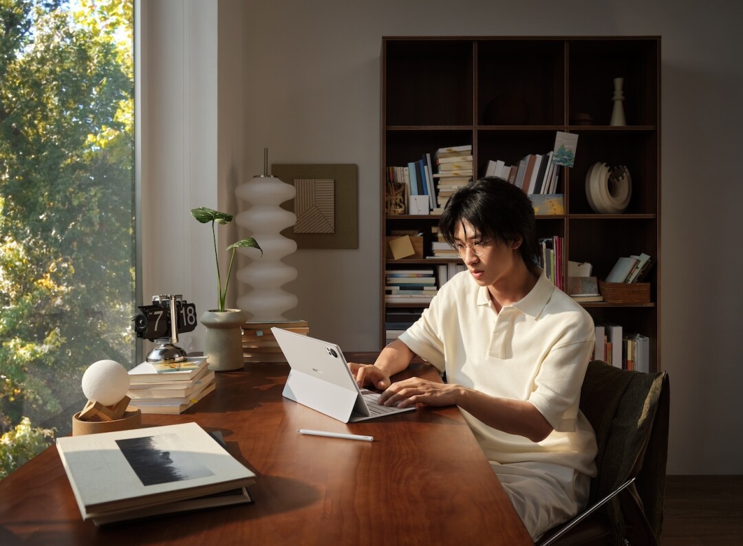 Планшет оснащен 12-дюймовым экраном с технологией PaperMatte нового поколения. Он обеспечивает яркость и четкость изображения, комфорт во время чтения и более широкий обзор. В комплекте поставляется умная магнитная клавиатура.