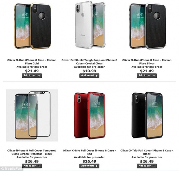 Еще в июне британская компания Olixar выпустила чехлы и защитные стекла для еще не вышедшего iPhone 8. Купить аксессуары можно через торговую сеть Mobile Fun, на сайте которой они появились сразу же. Цены на чехлы и защитные стекла для нового поколения смартфонов от Apple начинаются от 10,99 долларов (примерно 650 рублей).