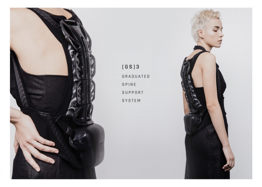 [GS]3 — это система динамической поддержки спины для пользователей, вынужденных носить его на постоянной основе. Одной из задач было найти визуальный образ устройства, уводящий акцент от медицинского контекста. В финале конкурса ребята показали прототип с рабочей механикой и электроникой, который подтвердил свою работоспособность и сейчас находится на выставках в Европе. Для финального продукта, который мог бы поступить в продажу, нужна полноценная разработка, инвестиции и строительство отдельной компании.