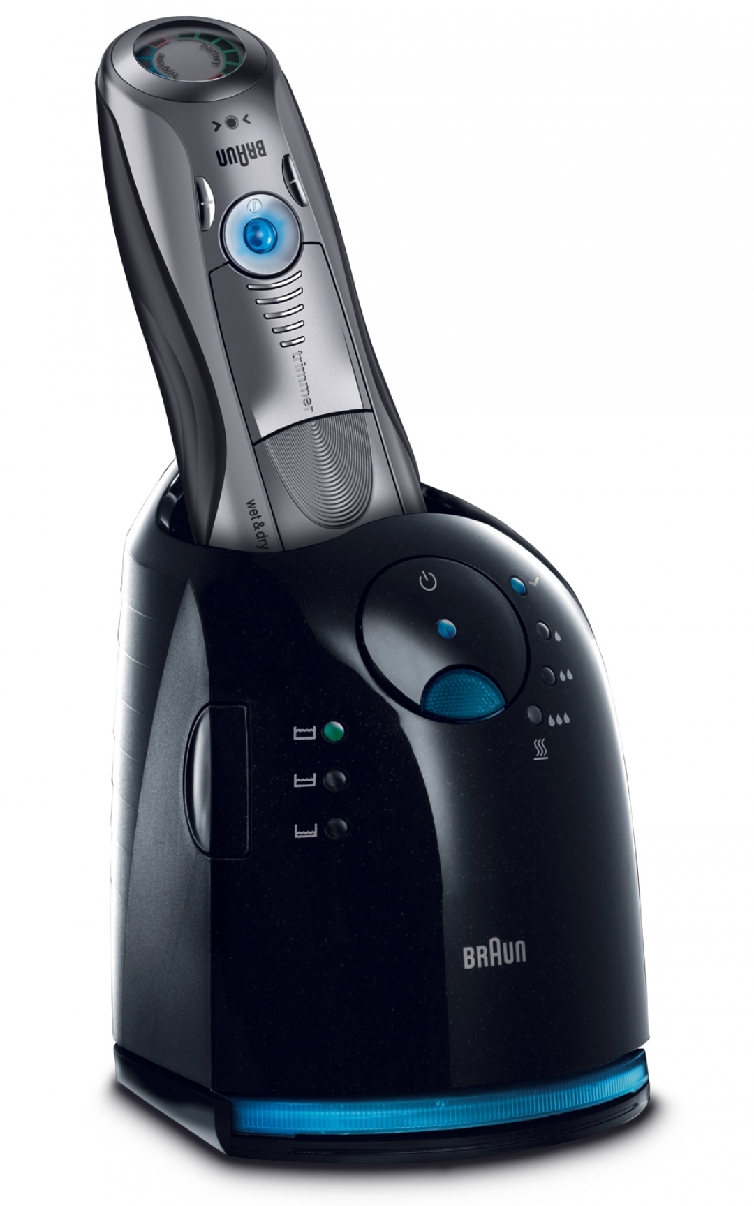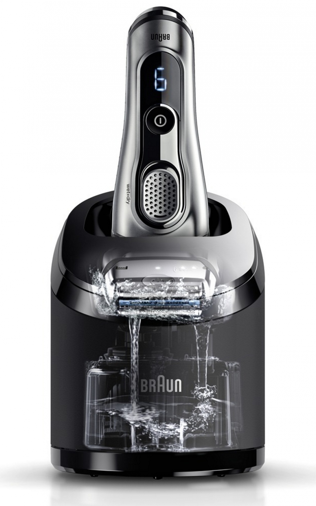 Все новые бритвы Braun водонепроницаемые и подходят для чувствительной кожи. Некоторые модели идут в комплекте с блоком clean & charge, который одновременно очищает, смазывает и подзаряжает электроприбор.