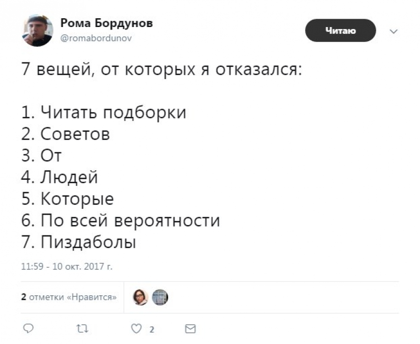 — Рома Бордунов (@romabordunov) 10 октября 2017 г.