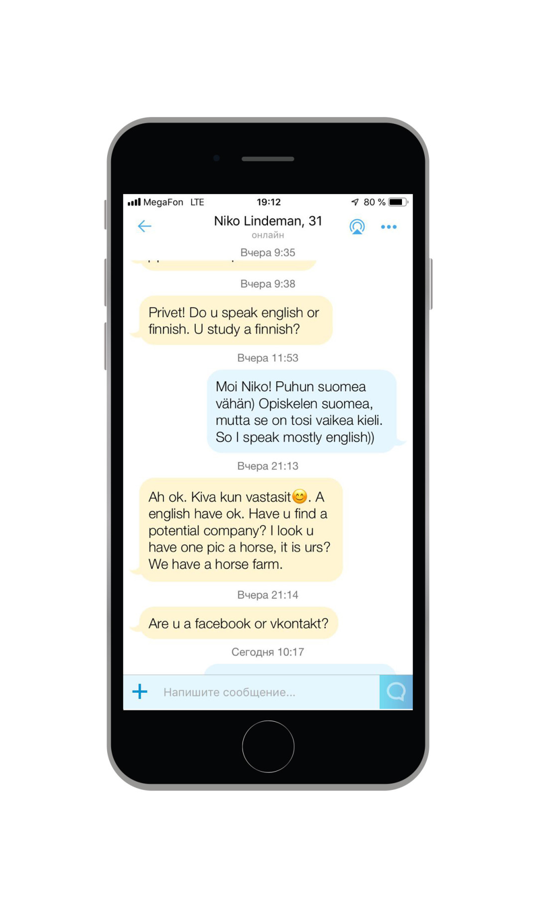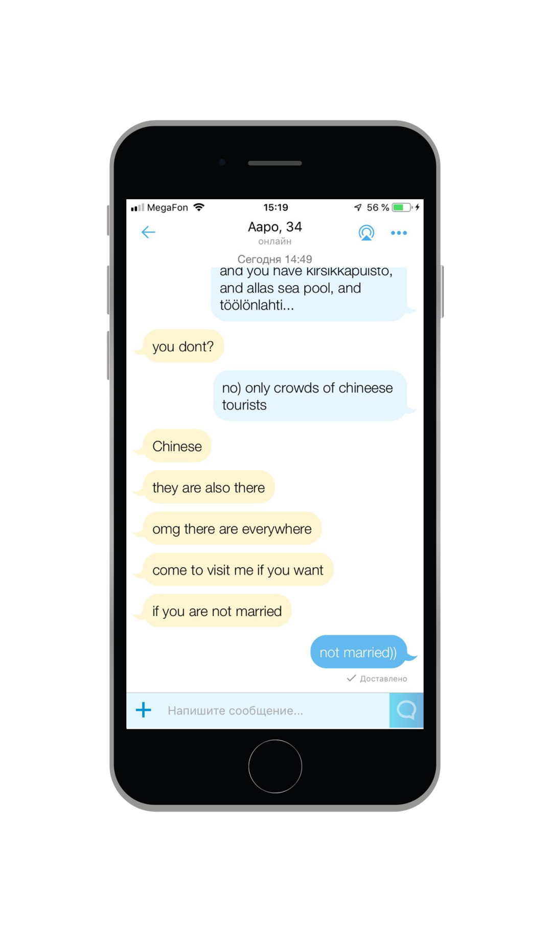 Но – сюрприз! – писать будут не только Микки и Матиасы, но и Андреи со Стасами. На «Мамбе» зарегистрировано много русских, живущих в Финляндии – и они предсказуемо тоскуют по родному менталитету и душевности. У таких визави плюсов, возможно, даже больше, чем у чистокровных финнов – как минимум нет ни языкового барьера, ни серьезной разницы в воспитании и мировосприятии, и шутки у нас общие – а вот у финнов чувство юмора специфическое. Но мы в рамках эксперимента выбираем Матиасов.
