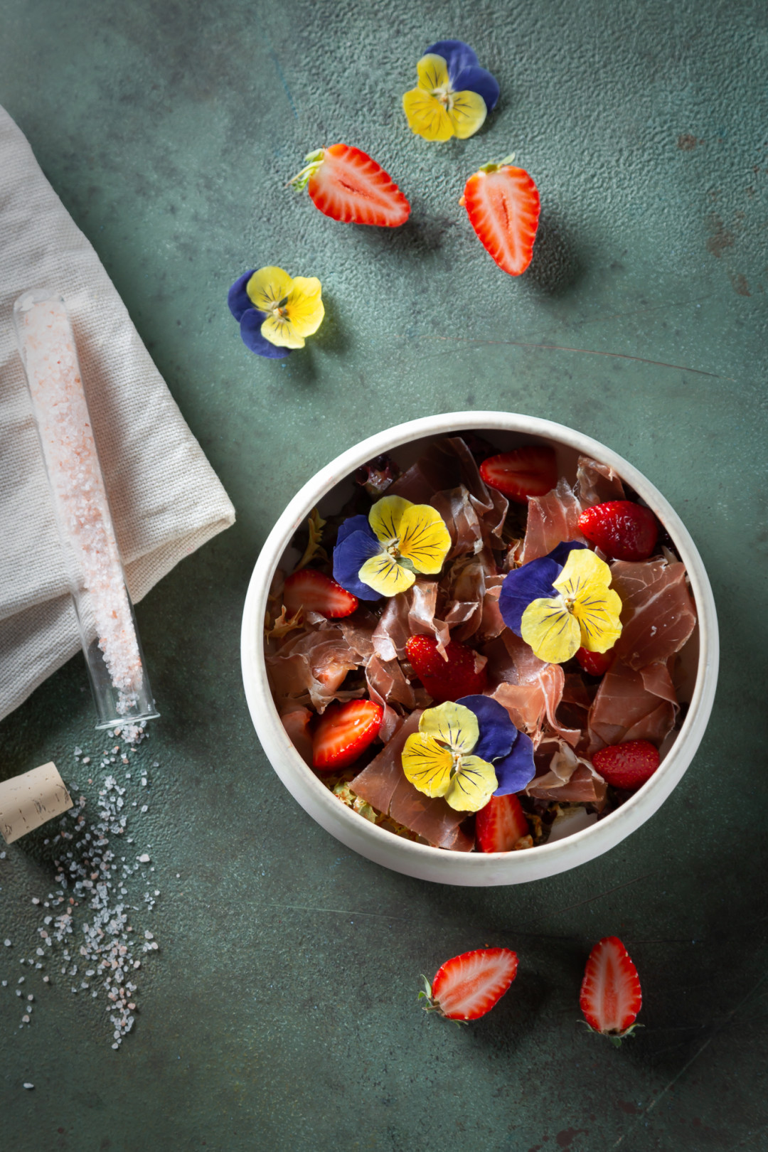 В меню — ветчина Серрано с личи и клубничной заправкой (980 рублей), томатный суп с маринованным персиком и камчатским крабом (750 рублей), ледяная рыба с перцем пиквилло и сублимированной вишней (1200 рублей). В каждом блюде на первый план выходят нетривиальные формы, вкусы и текстуры. И, конечно, подача — в авторской керамике ручной работы бренда Guzeva.