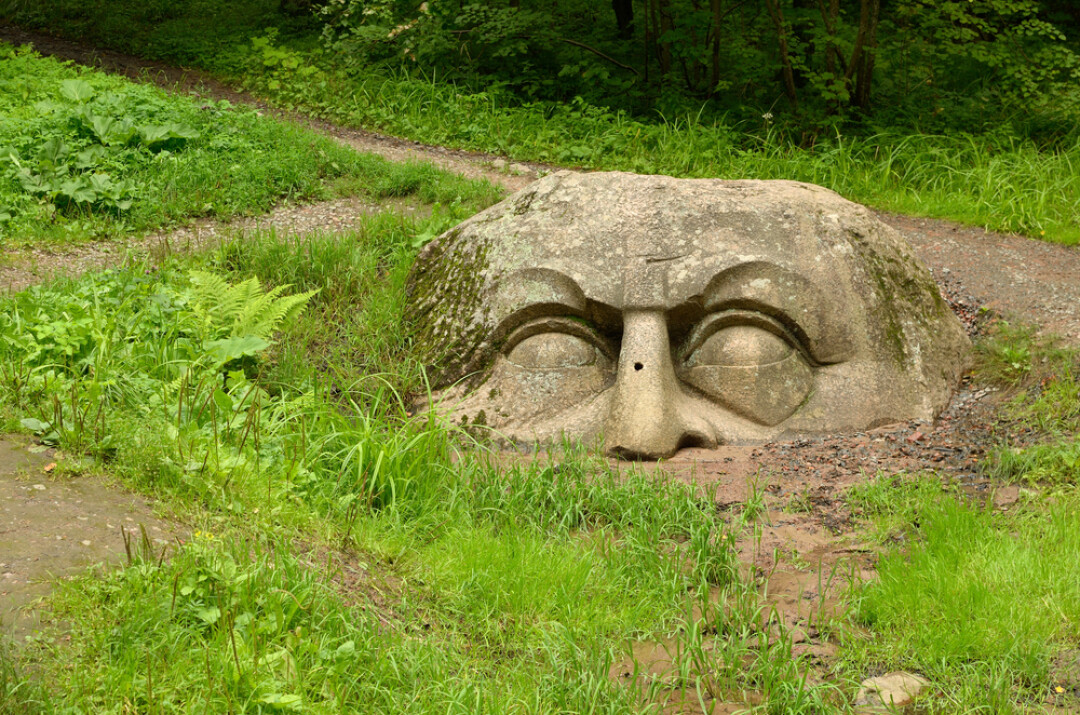 Если ничего не слышали об этом месте, наверняка видели фотографии в социальных сетях с валуном головы (ее еще часто именуют «Адамова голова») — это скульптура неизвестного мастера на территории бывшей усадьбы Лейхтенбергских в Петергофе. Здесь располагается одноименный дворец в стиле позднего классицизма. Есть озеро, возле которого приятно сидеть в теплую погоду, и выход к Финскому заливу. Вход в парк бесплатный. Добраться сюда можно на электричке от Балтийского вокзала в Калищенском направлении до станции «Университетская» или на 200 автобусе от станции метро «Автово» до остановки «Цветоводческий питомник». На автомобиле — по Ораниенбаумскому шоссе.