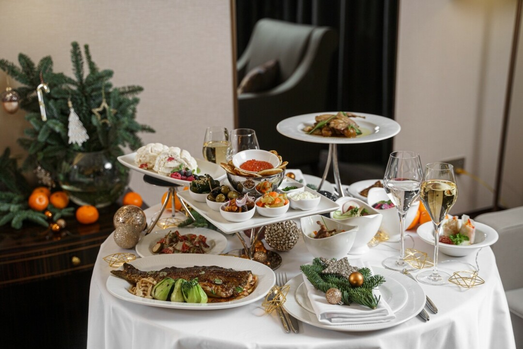Шеф-повар отеля, Максим Поленин, придумал два элегантных формата, которые сделают самый ожидаемый вечер года незабываемым. Один из них — ужин на двоих в номере c панорамными видами на праздничный город. Другой — новогодний вечер в камерной дружеской обстановке с легким музыкальным оформлением за ужином в формате шведского стола.