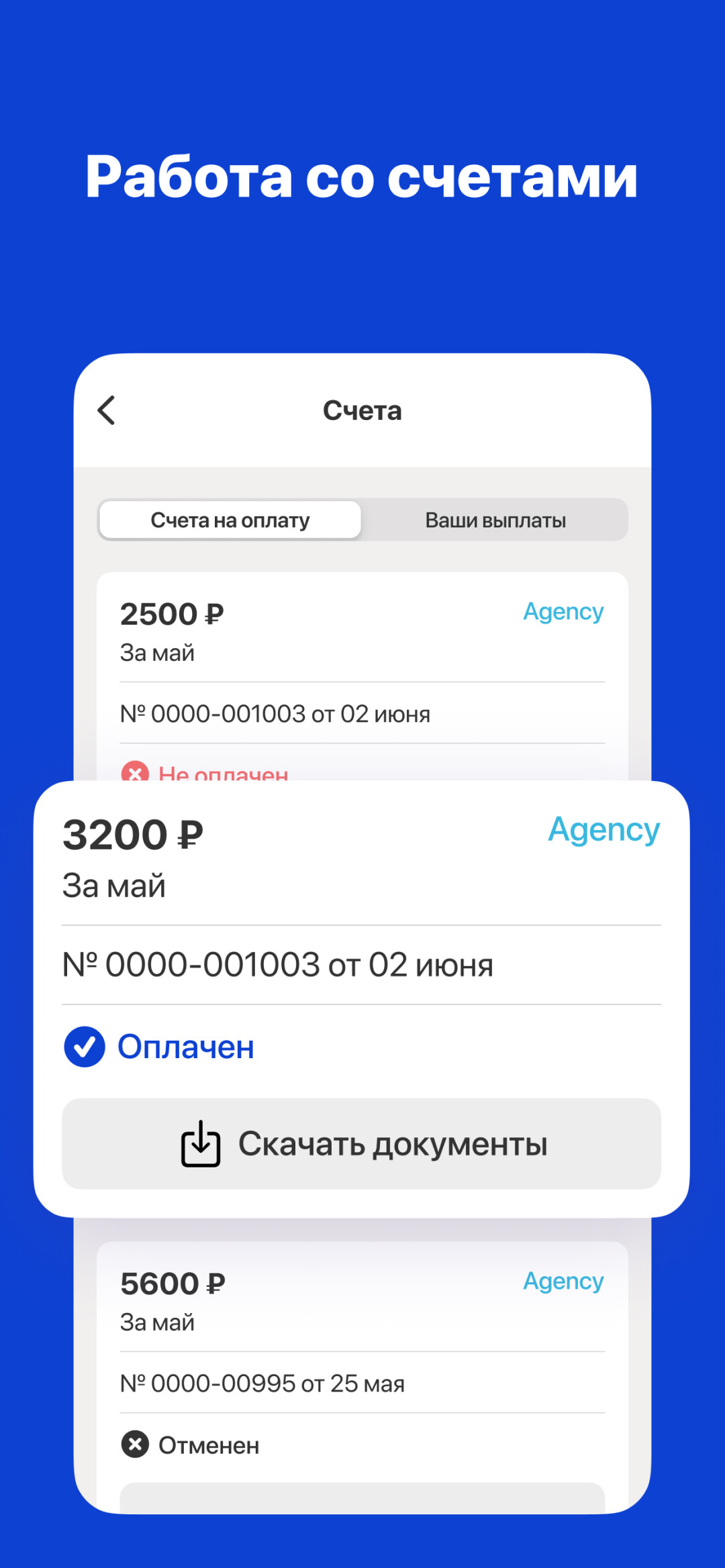 - «Счета». Тут собираются платежные и закрывающие документы.