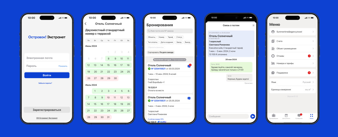 Мобильное приложение предоставляет доступ к основным функциям веб-версии Экстранета Островка.