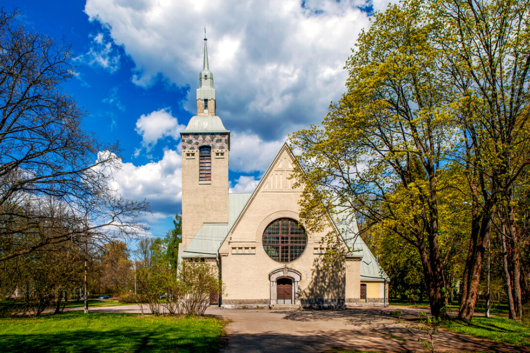 В 1915 году вместо сгоревшего деревянного был построен новый каменный православный храм, спроектированный епархиальным архитектором Петербурга Николаем Никоновым, автором дома-пряника на Колокольной улице и Иоанновского женского монастыря на Карповке. Здание в народе называют еще «Белая невеста» из-за цвета. В 1924 году церковь пережила ураган и наводнение, в 1925 году — пожар. Затем постройку использовали как продовольственный склад. В 1970‑е годы ее хотели снести, но главный архитектор Ленинграда Геннадий Булдаков отстоял архитектурный памятник. Богослужения вернулись сюда в 1989 году. Храм дошел до нас в почти неизменном виде и продолжает радовать глаз (особенно с высоты колеса-обозрения!).