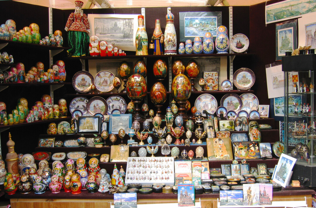 Наибольшей популярностью у туристов пользуются открытки петербургских художников и сувениры с военно-морской тематикой. А еще среди гостей города большой спрос на тематическую кондитерскую продукцию и изделия из фарфора.