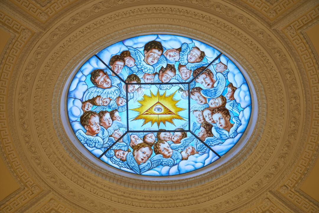 Специалисты открыли свыше 90 из 120 ликов херувимов, что считали утраченными. Но это не единственная находка. Когда эксперты осматривали лепнину, увидели подлинную дубовую раму XIX века, а в ней — аутентичные кусочки витражного стекла синего, белого и малинового цветов. По этим находкам удалось определить оригинальную палитру цветов и воссоздать три витража — два с изображением ангелов и центральный Всевидящее око художника Александра Перница.