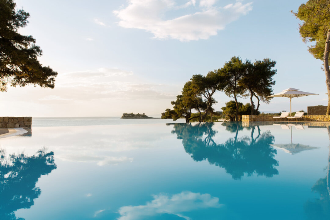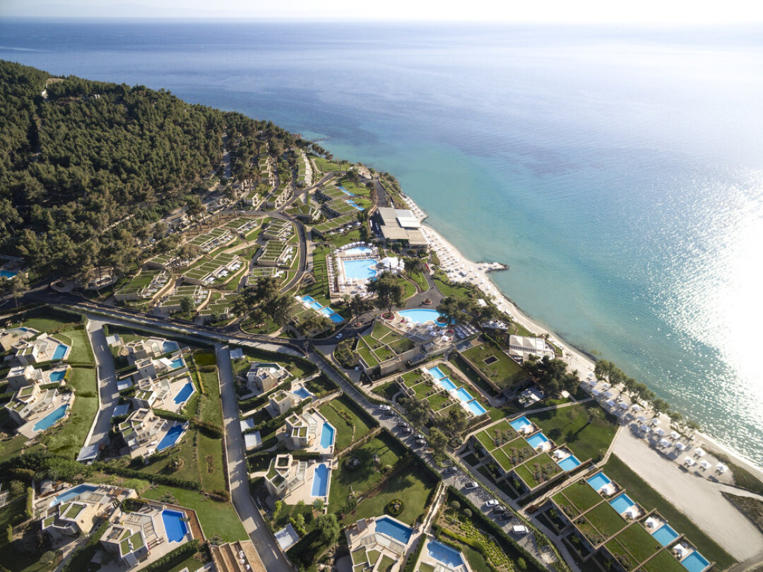 Девять гектаров пышной зелени, древние оливковые деревья, 450-метровый пляж, отмеченный «Голубым флагом», — настоящий рай для путешественников, обожающих концепцию Unconditional Luxury. В стоимость проживания включены не только напитки, которые подаются прямо к бассейну, но и меню от шеф-поваров, отмеченных звездами «Мишлен». На курорте есть рестораны с азиатской, итальянской и греческой кухней. А еще на территории есть спа-центры Anne Semonin, детские клубы, подогреваемые бассейны и множество развлечений.