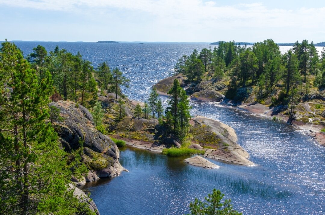Архипелаг из 650 скалистых островов, разделенных проливами, бухтами, протоками — часто сравнивают с норвежскими фьордами. Похожие рельефы есть у берегов Финляндии, Исландии и Канады. На некоторые острова можно попасть с берега по мостам, но исследовать шхеры получится только на лодке. Практически на каждом есть обжитые стоянки, но перед поездкой лучше свериться с картой нацпарка — часть локаций может быть временно закрыта. На территории можно встретить краснокнижных животных: лесного северного оленя, росомаху, садовую соню, озерного лосося, кумжу и тритона гребенчатого.