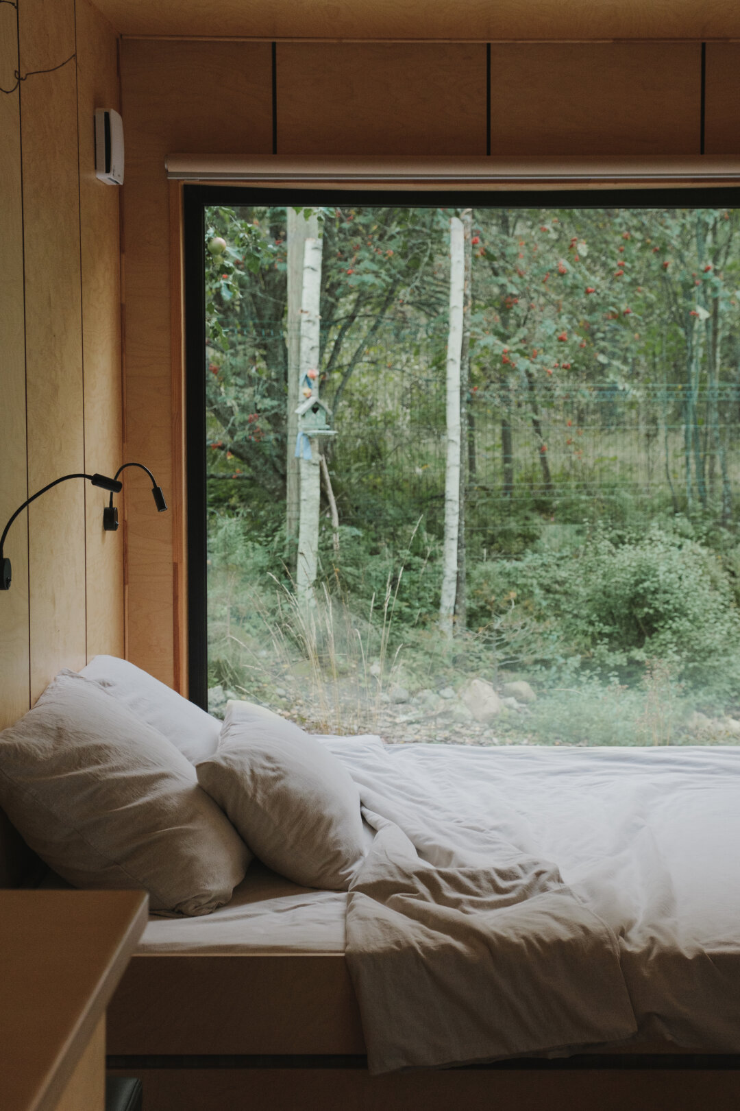 Глэмпинг из двух морских контейнеров расположен на берегу Финского залива. Каждый домик выполнен в минималистичном стиле и вмещает до трех человек: есть спальня с панорамным окном, обеденная зона, кухня, ванная комната и терраса.