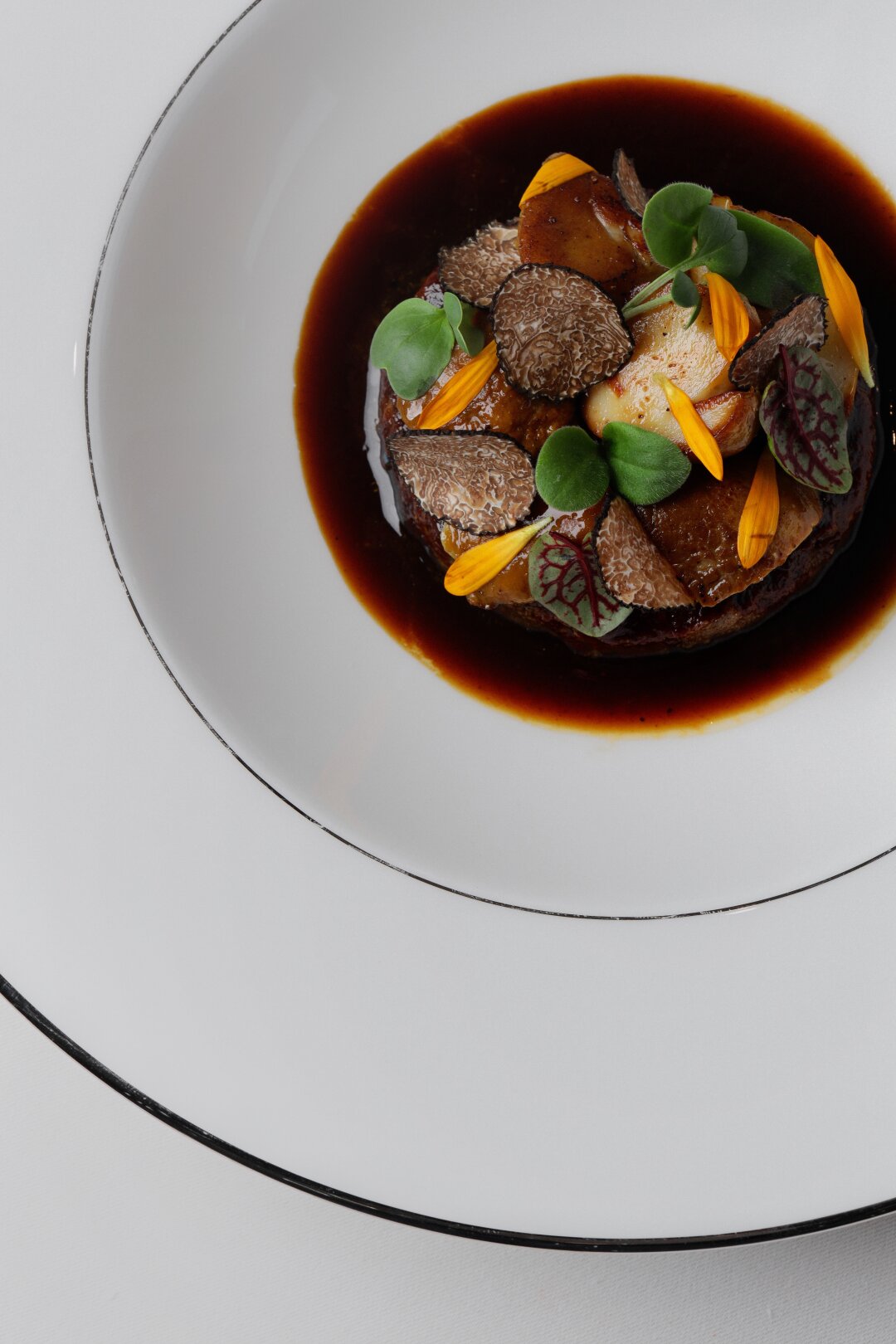 В О2 Restaurant (под куполом на крыше) поднимаемся не только за селфи на фоне рубиновых звезд, но и за средиземноморской кухней. Пробуем сибас гравлакс с соусом leche de tigre и печеным луком-пореем, фиш-энд-чипс в варианте haute couture, крокеты из цыпленка с фуа-гра — в авторской интерпретации нового шефа Ивана Маркова. Без права на ошибку меню открывают закуски — с уже подобранными к ним винами от сомелье Милены Семеновой. За коктейль-пультом стоит Филипп Глушаков, миксуя классику («Рэд 25», «Королева Вишни») и новые вкусы — «Сирокко», «МонакО2». Фирменный десерт йогуртовый мусс с лепестками фиалки от шеф-кондитера Нины Надолинской запомнится надолго. На чайную церемонию (в чашечках из императорского фарфора!) спускаемся в лобби — чтобы под звуки фортепиано отведать куглоф амаретто и фисташковый скон.