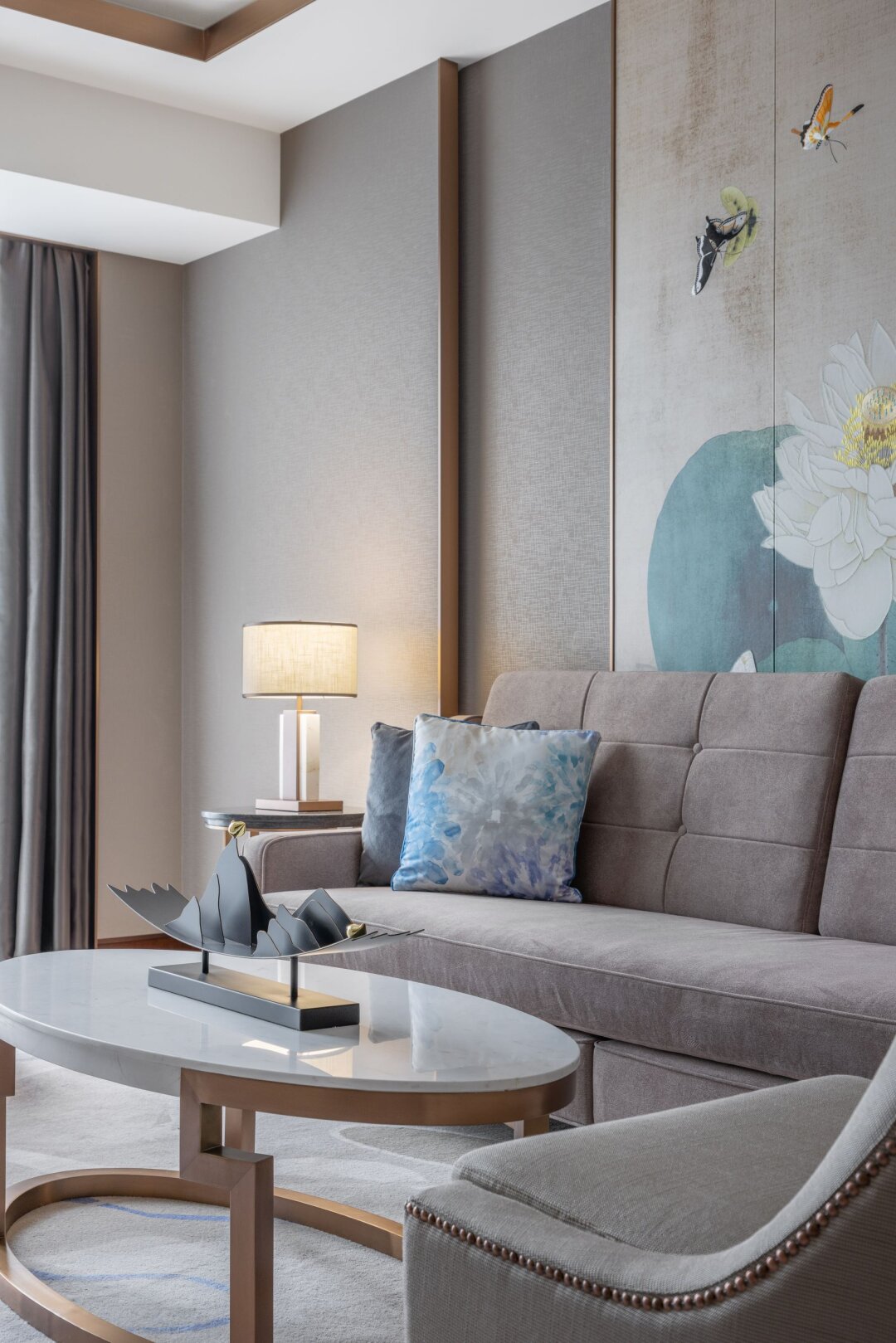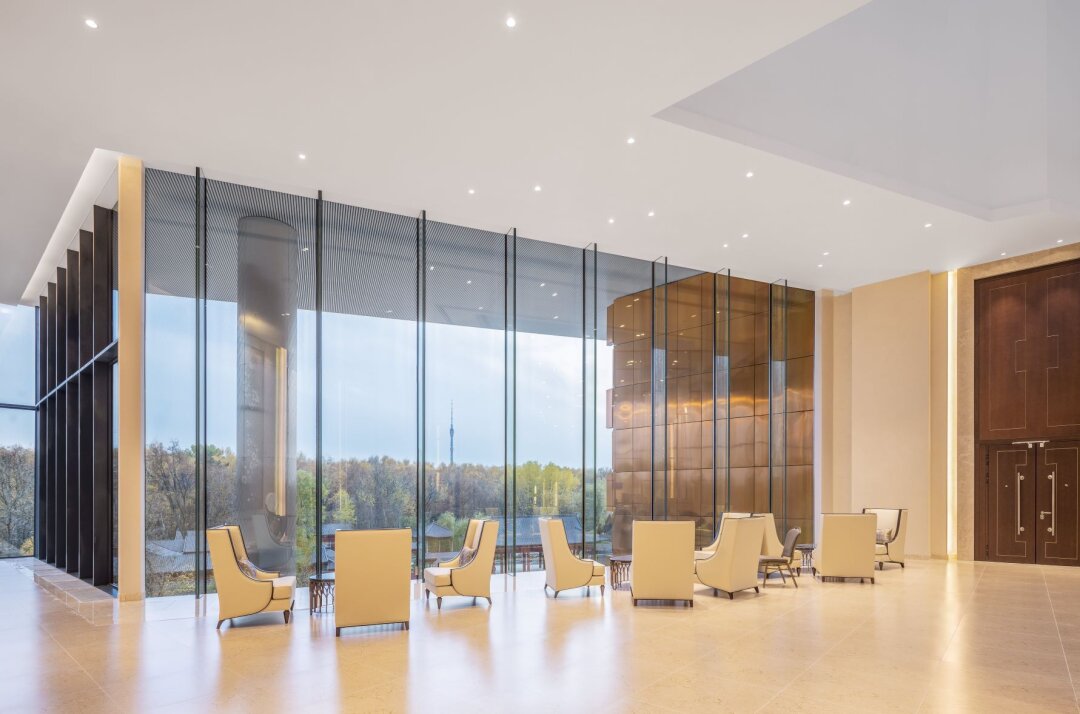Флагманский пятизвездочный отель группы Soluxe (часть многофункционального комплекса китайского делового центра «Парк Хуамин») находится в экологически благоприятном районе Москвы (вокруг километры парков Ботанического сада и ВДНХ). Фасад здания смотрит на восток (притягивая положительную энергию восходящего солнца!), ведь это первый отель в столице, выстроенный по всем правилам учения фэншуй. В аутентичности проекта можно не сомневаться — даосские практики организации пространства осваивали вместе с китайским архитектурным научно-исследовательским институтом. Удачу гостям сулят уже с порога: просторное, полное воздуха и света лобби, здесь же фонтан и водные дорожки (символы богатства и гармонии!). Панно «Пурпурный воздух идет с Востока», синие кристаллы на панелях в лобби — к успешным сделкам. Потоки энергии ци стекаются прямиком в конференц-зону исполинских размеров (4600 метров!) с 15 залами разных конфигураций.