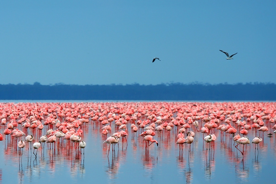 Мало на свете озер живописнее, чем Маньяра — родина розовых фламинго. Их численность поражает даже видавших виды путешественников. От количества розового рябит в глазах, и подчас не видно гладь озера, к тому же это монохромное пятно отражается от поверхности воды, визуально преумножая и без того внушительную популяцию. Чтобы дать взгляду немного отдохнуть, можно полюбоваться другими диковинными птицами: пеликанами, аистами, ибисами, бакланами и т.д. Всего здесь обитает более 400 видов пернатых.