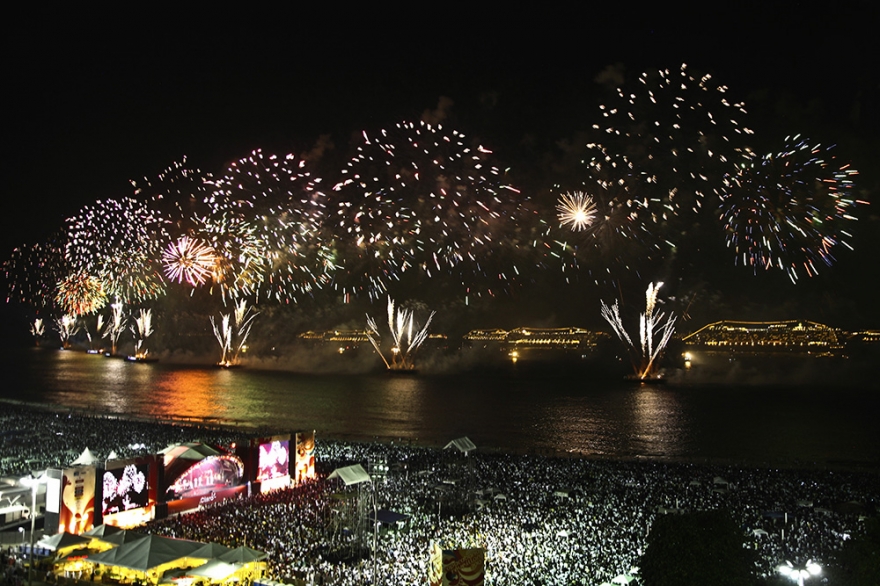 Пожалуй, самая крупная, зрелищная, зажигательная и безбашенная новогодняя вечеринка в мире происходит 31 декабря на пляже Копакабана. Несколько километров побережья заполняют толпы местных жителей и туристов со всего света, чтобы поучаствовать в удивительном обряде под названием «Ревельон». Дресс-код мероприятия прост: нужно, подобно Остапу Бендеру, облачиться в белые брюки или любую другую одежду белого цвета. Затем это огромное белое море людей приносит дары древней богине Иманже — покровительнице моряков: подношениями становятся белые цветы и зажженные свечи, которые пускают по воде. В этот момент надо загадать самое заветное желание — согласно поверью, если свеча долго не гаснет, оно непременно исполнится.
