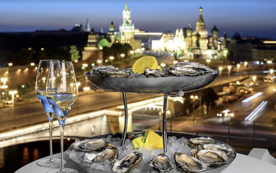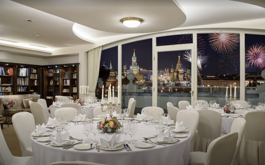 Одно из основных действий 31 декабря будет происходить в зале «Библиотека»: здесь c открытой террасы открывается вид на Красную площадь, Спасскую башню и собор Василия Блаженного. На праздничном шведском столе запланированы устрицы, блины с красной икрой, террин из фуа-гра, морепродукты и фирменные горячие блюда отеля – запеченный осетр и ягненок-тандури, – а также шампанское без ограничений. Вечеринка стартует в 22.00 под dj-сет.