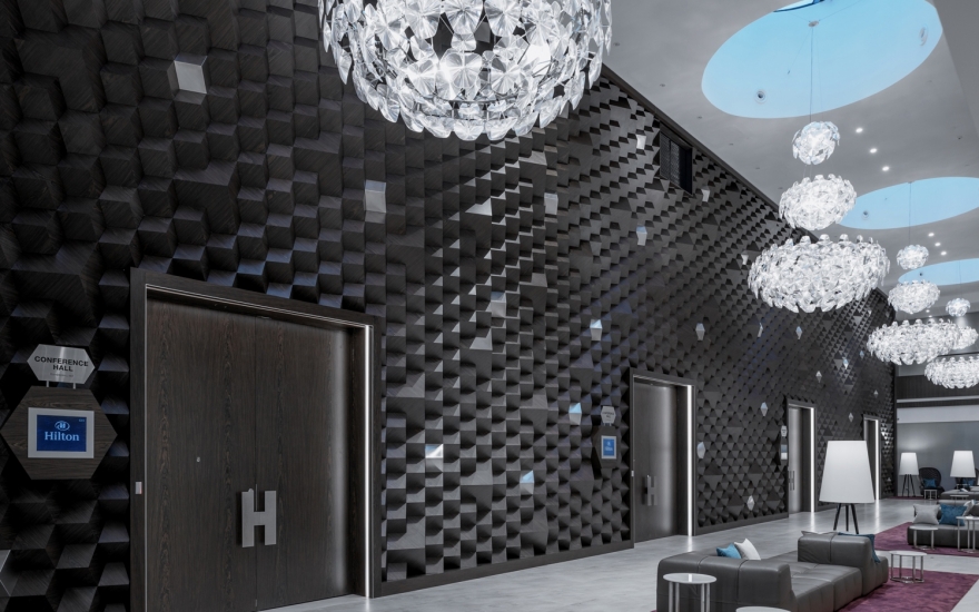 Пространство четырехзвездочной гостиницы Hilton St. Petersburg ExpoForum разрабатывало архитектурное бюро Lundwall Architects. Мастера нордического дизайна работают по всему миру: в портфолио шведской команды — проекты в Европе, Азии, Африке и США. Для отеля были выбраны спокойные светло-серые и бежевые тона, а ключевой деталью стало естественное освещение, благодаря которому создатели отдают дань белым ночам.